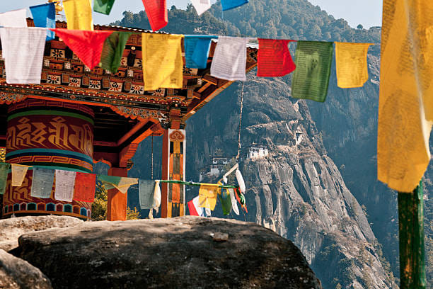 Bhutan als boeddhistische cultuur met Himalaya-toppen en het Tijgernest Bhutan is rijk aan boeddhistische cultuur en welzijn in de glorieuze Himalaya.